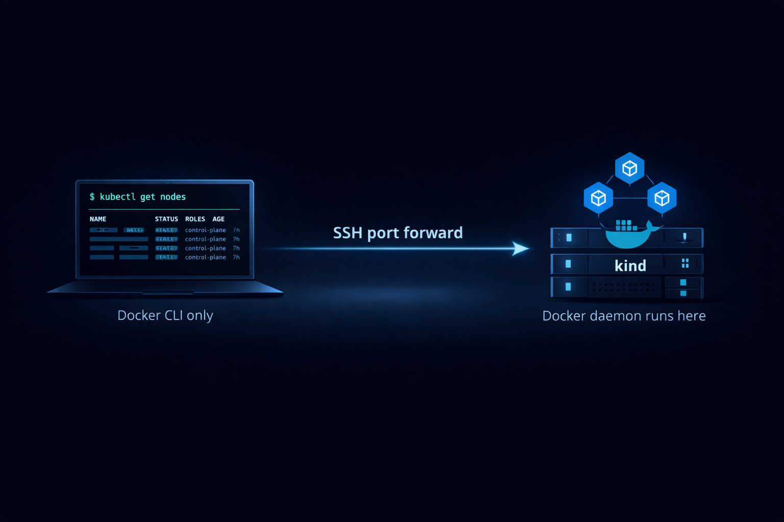 This method allows your local kubectl to connect directly to the remote kind cluster without SSH tunneling.